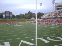 おそらくなかなか見られないであろう好プレーもあった。ほぼ端っこから一人で独走してタッチダウン。Stony Brook 側の選手のプレーだったので大盛り上り!!