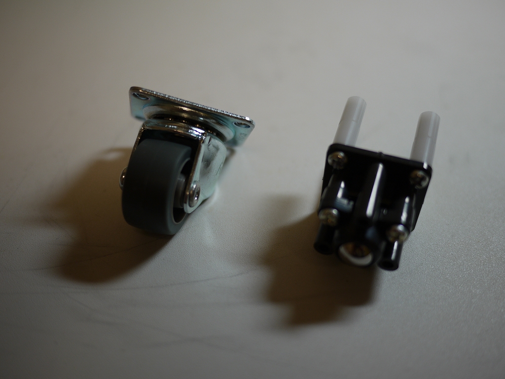 床に優しいゴム製のキャスター(写真左)に交換されています。