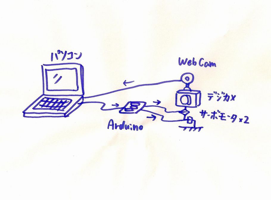 ⑤いい構図になったら、PC→Aruduino→デジカメにシャッターを切る命令を送ります
